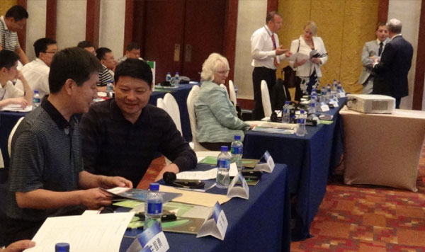 復(fù)合保溫砌塊的12大優(yōu)勢引起了國外專家的濃厚興趣,圖為美國建筑節(jié)能研究專家羅伯特先生,特意向謝總請教并表達(dá)了技術(shù)合作愿望